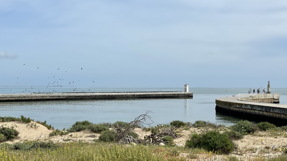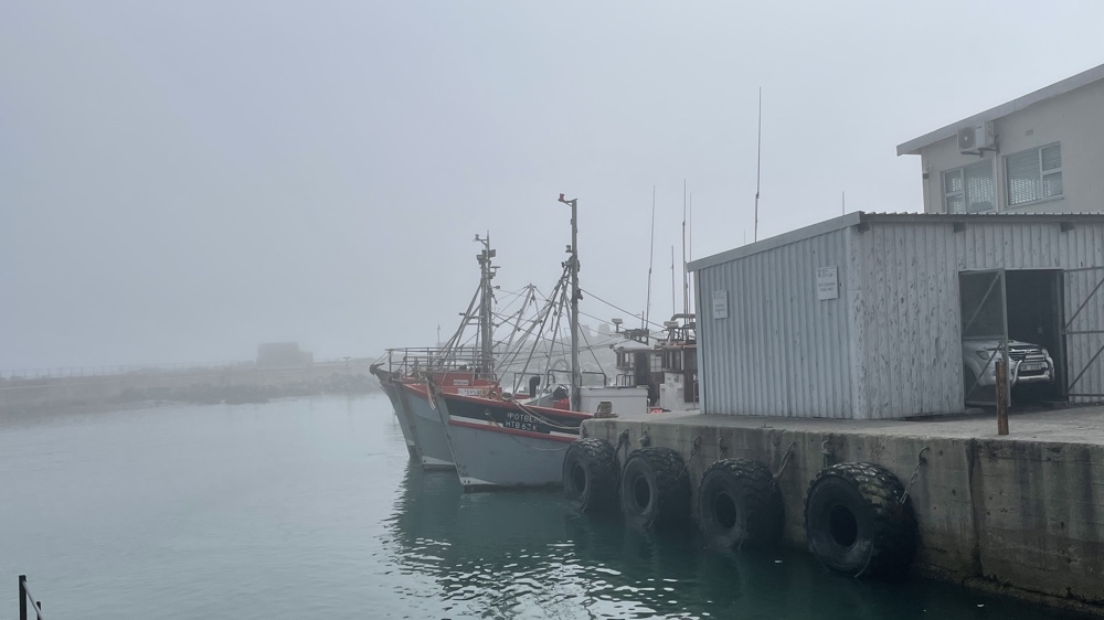 Velddrif harbour - hundreds of cormorants on the far wall.