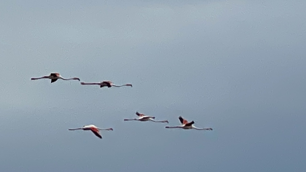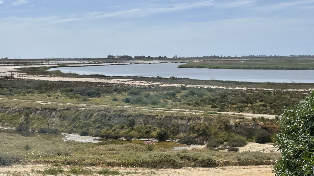 From the campsite we could see some white 'hills' which we thought might be salt workings and we often saw flamingoes flying over in the distance. There was a track that we were able to follow which led through some of the salt pans until we arrived at the 'hills'.