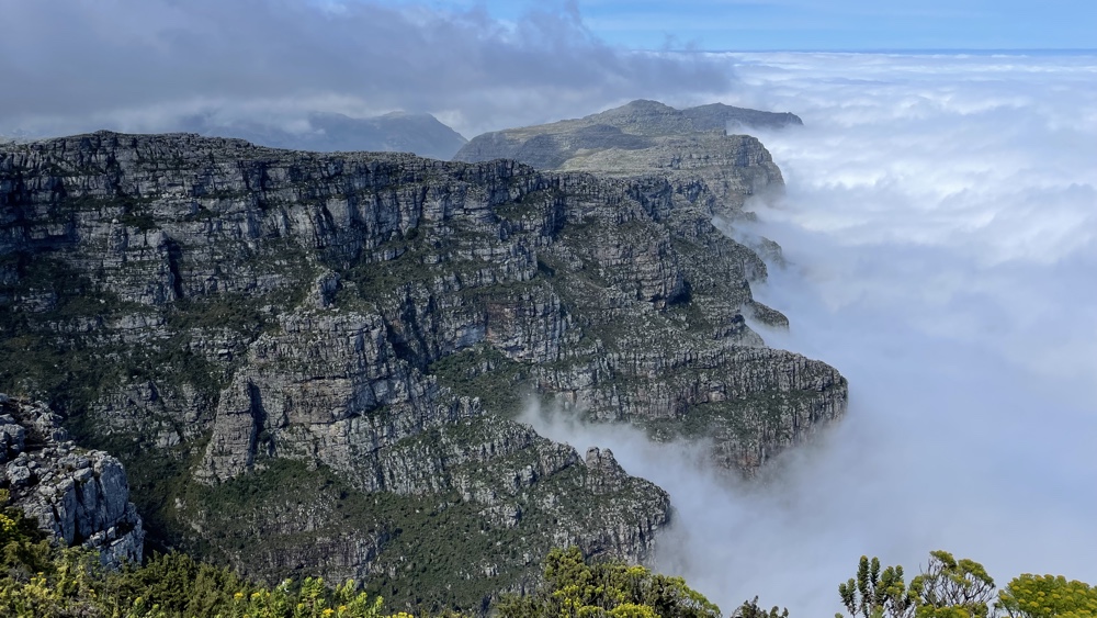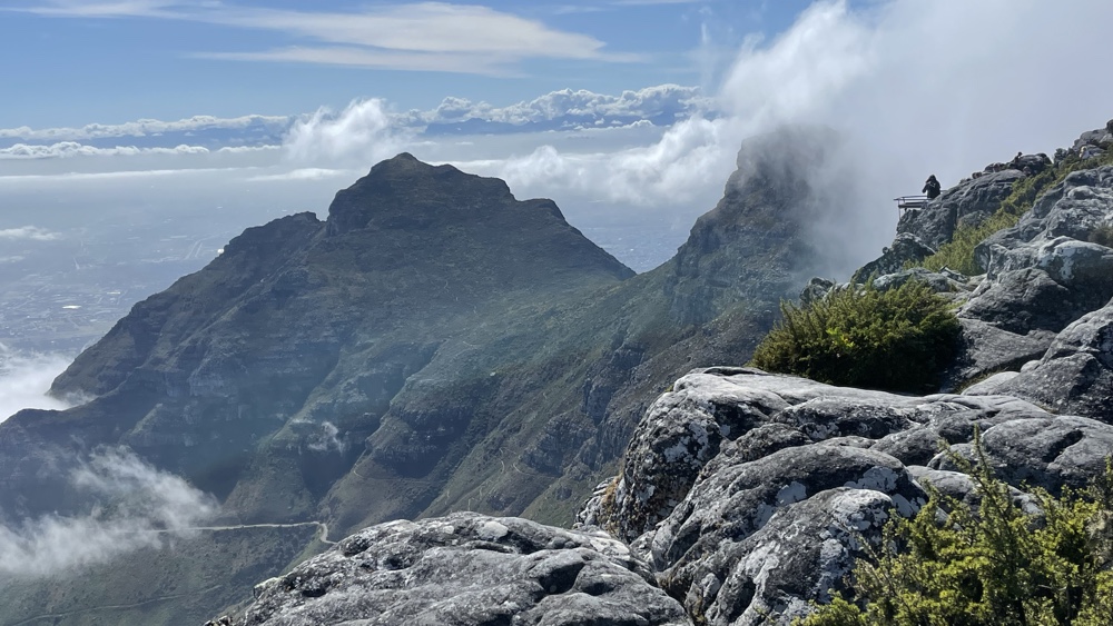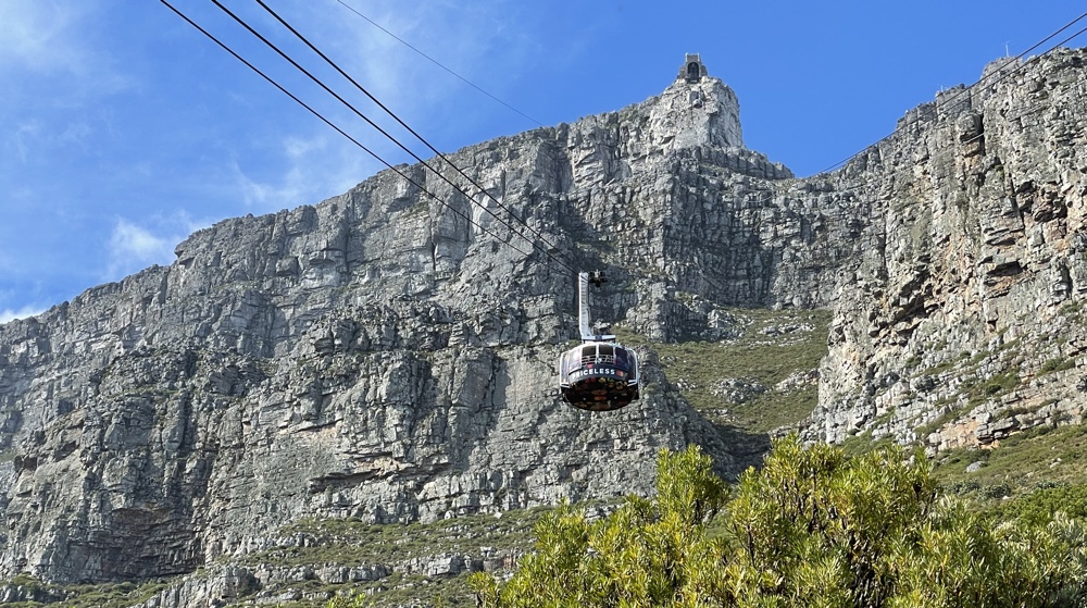 Table mountain is a must for visitors to Cape Town. We bought tickets online (they are valid for 7 days) and checked the Table Mountain Aerial Cableway web page which has up-to-date information about the weather conditions. We got there soon after 8.30am, managed to park fairly close to the bottom cable car station and didn't have to wait long to get on board. The car revolves as it ascends so you get a great view in all directions. At the top we had mixed views with mist and cloud changing all the time - it did make for a very asmospheric experience, quite different to our previous visits which were in clear sunshine.
