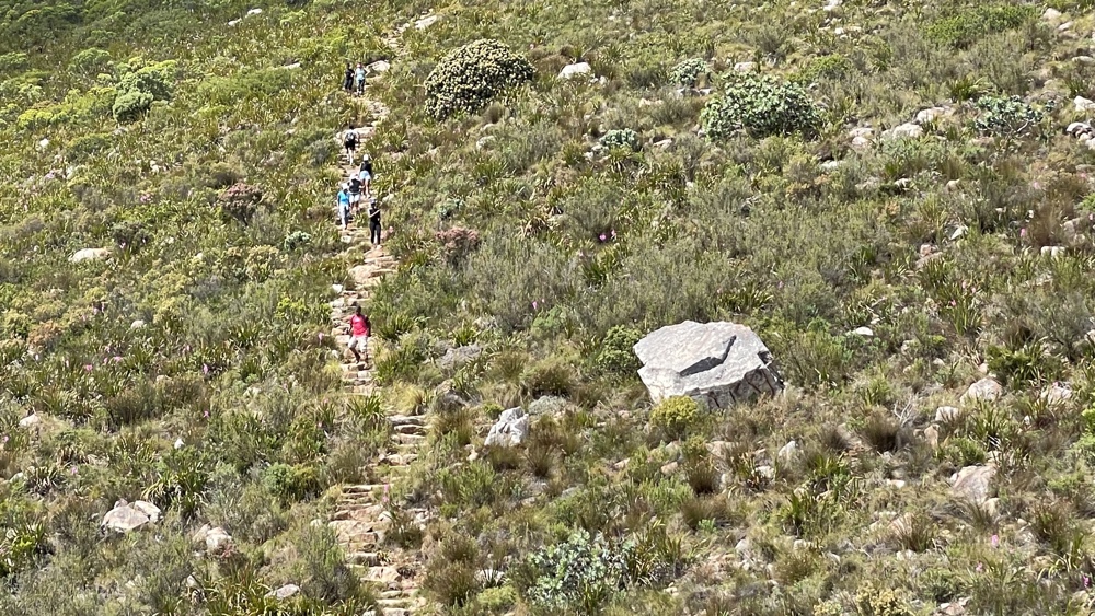 From the cable car you have a good view of one of the walking paths with several walkers coming down after an early start.