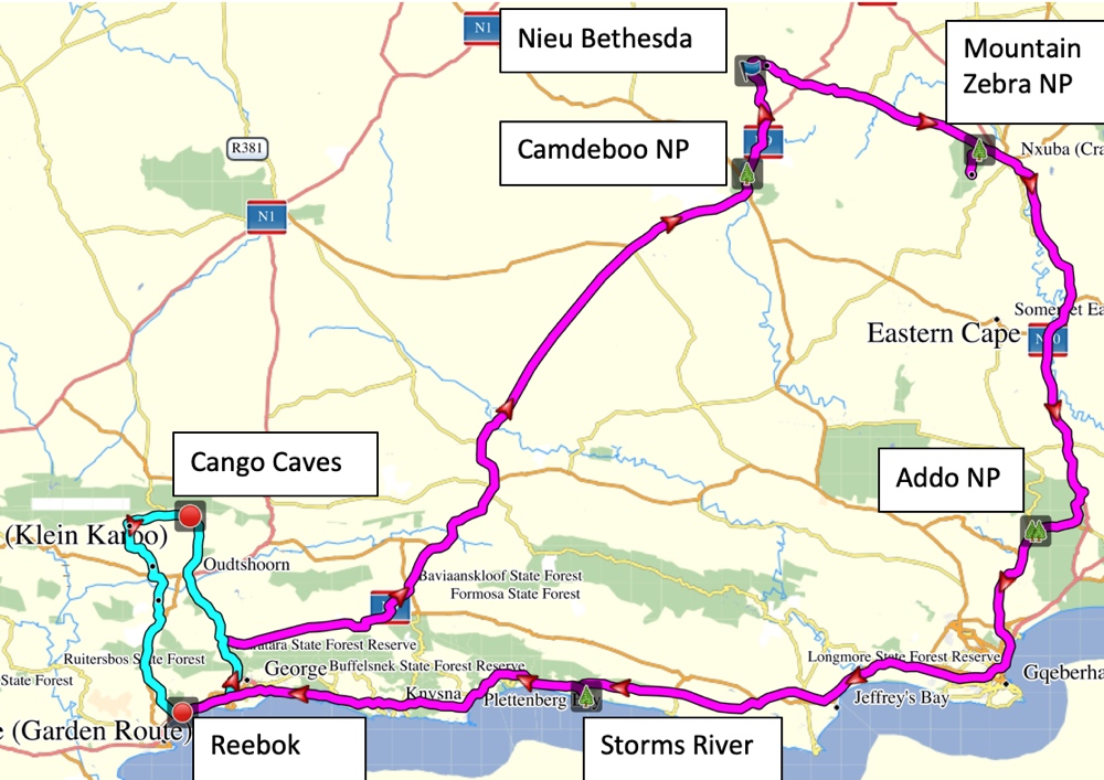 In April Di and David came to visit us. We had a great time enjoying the local countryside, beaches, cafes and restaurants plus a trip to the Cango Caves. We also spent a week visiting four of the South African National Parks.