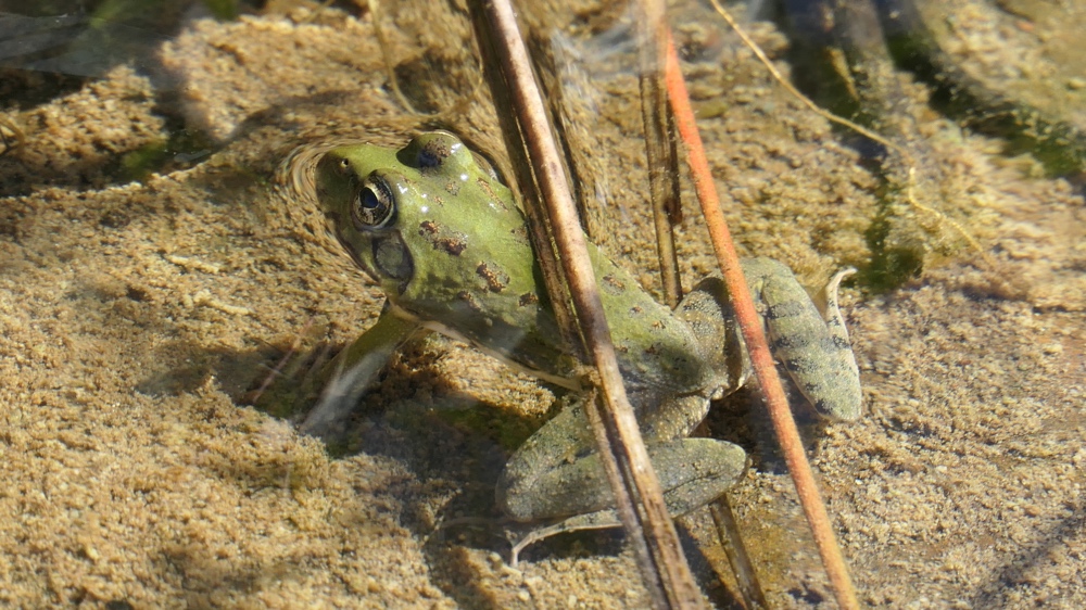 We stopped by the river crossing to have a look around. There were several small frogs in the water.