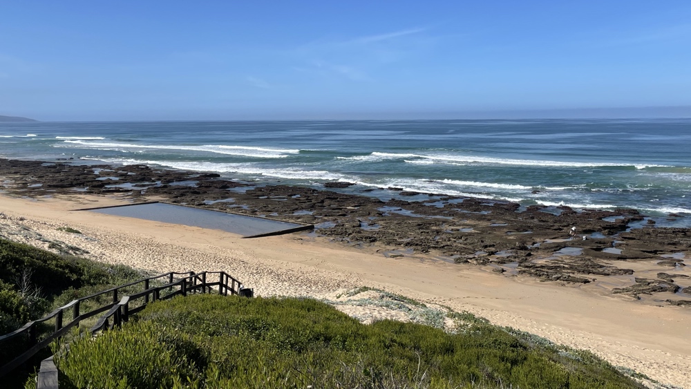 Reebok/Tergniet beach. There are 2 tidal pools along this stetch of beach and at low tide there are lots of rock pools waiting to be explored.