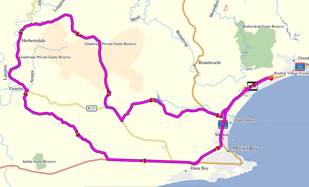 Before reaching Hartenbos we travelled alongside another small game reserve where we saw several giraffe.