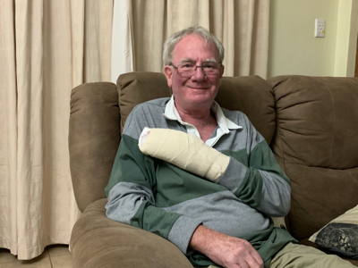 Kevin on his way up in the bakkie.