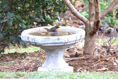 A white-browed robin-chat enjoying a bath. |