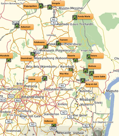 Location: 40km west of Musina. Website: this site wasn't working last time I checked (March 2016)