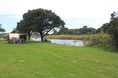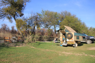 Bonnievale River Lodge. Jan 2013. Location: S57 11.7 E20 04 52.0 Website: http://www.bonnievaleriverlodge.co.za Cost: R100pppn. Ablutions: Clean. Hot water. Electric: Yes. Sites: There are two sections. At the bottom section near the river you cannot take cars/caravans. The 'upper' sites have a deck with plenty of shade. |