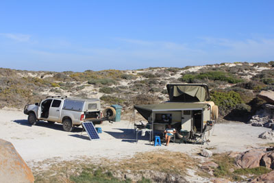 Tietiesbaai, near Paternoster. Feb 2013. Location: S32 49 02.1 E17 51 57.1 Website: Saldanha Bay Municipality Cost: R116 fo 1 night. Ablutions: Clean. Hot water from solar panels. Electric: No. Sites: Lots of sites along the beach and some amongst nearby rocks, which is where we camped. No shade. |