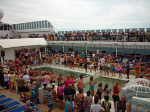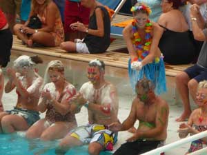 One was a 'Crossing the Tropic of Capricorn' initiation ceremony and involved any interested passengers getting covered in flour, eggs, tomato sauce etc before jumping into the pool (which then had to be emptied and refilled). |