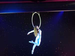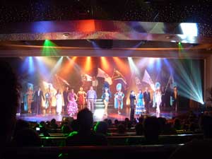 Every evening there was a show. As we were on the second dinner sitting (at 8.45pm) we went to the second show which started at 11.45pm and lasted for 30 - 50 minutes. There were a wide range of acts including an aerial artist, a hypnotist and a magician as well as several singers and the dancers. |
