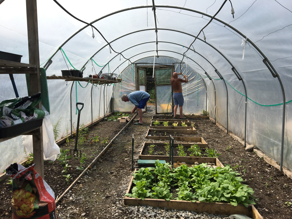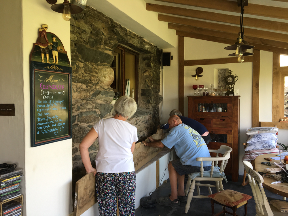 Jella and Kevin adding a bench seat to the Sitouterie.