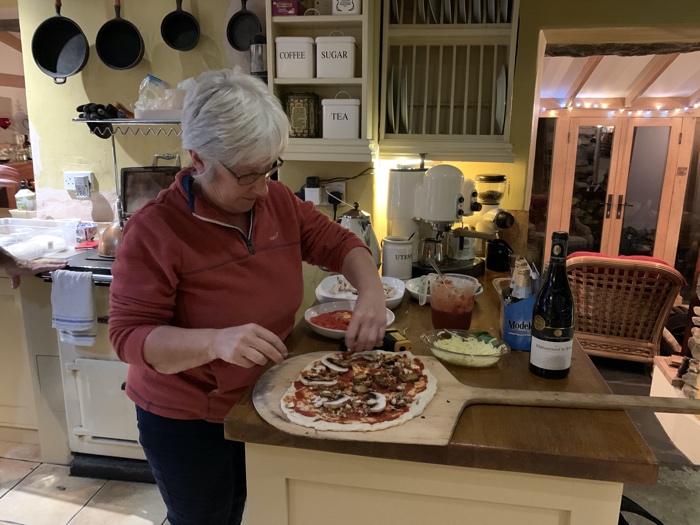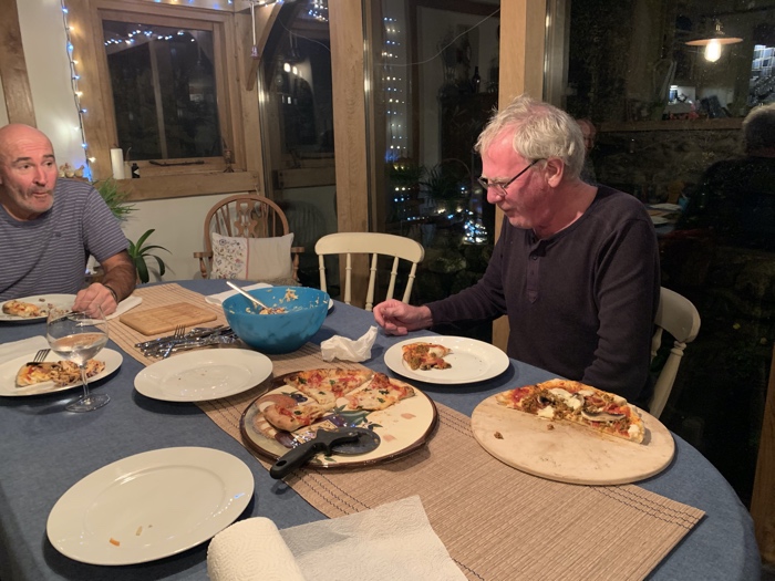 We always enjoy our time at Woodend. Paul fired up his wood-fired pizza oven - best pizzas ever! He makes them from scratch, even the dough.