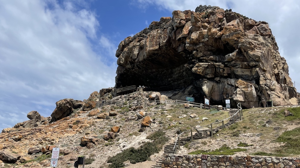 We parked at The Point and followed the first part of the St Blaize walking trail which passes by a large cave and then goes up to the cliff top. The cave is a natural grotto overlooking the sea, 10m high and 72m wide and is an important archaelogical site which has shown that people lived here thousands of years ago.