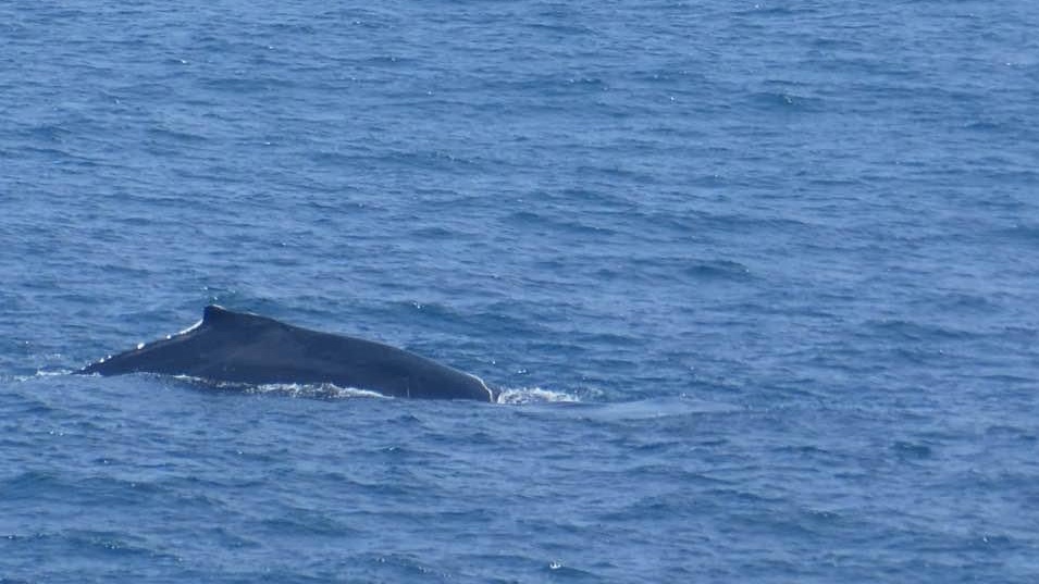 David got a good shot of a whale out at sea.