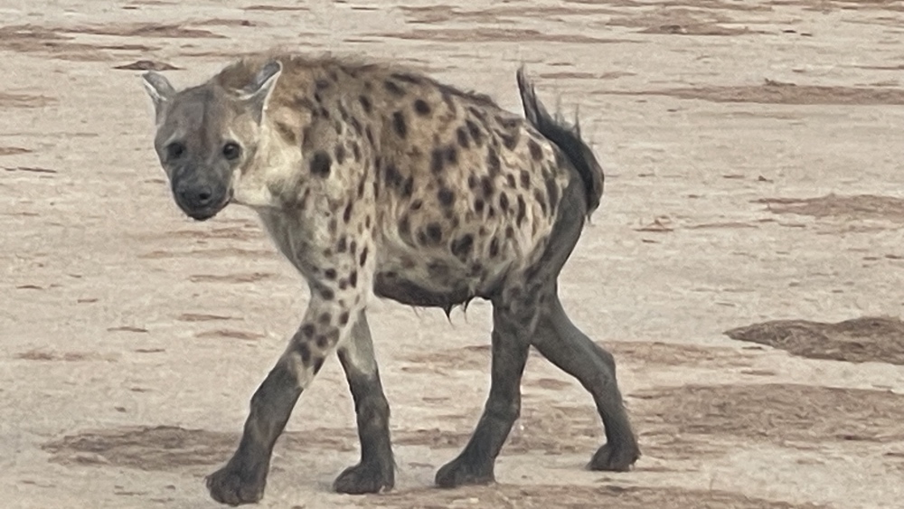 Some of the other animals we saw included warthog, hyena, kudu, zebra and buffalo. At one of the dams we saw a heron sucessfully catch a large fish.