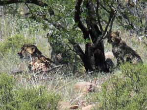 On our way into the Park we were lucky enough to see a leopard with her 4 cubs. They crossed the road just in front of us (at first we thought they were jackal) but by the time I'd got my camera out they were going into the bush to look for some shade. |