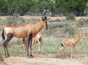 Apart from plenty of zebra we also saw other animals and birds. The red hartebeest and wildebeest had calves. |