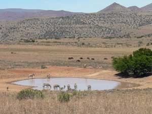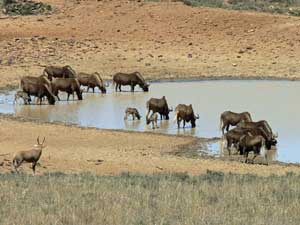 We spent some time at this waterhole which had a constant stream of visitors around midday - zebra, bontebok, wilde beast and springbok. We were hoping that the cheetahs might put in an appearance but were out of luck!