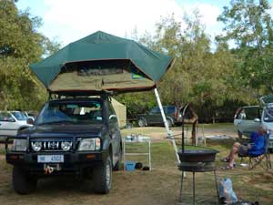 We'd been very happy with the Oz tent that we'd been using for the last 18 months but when it needed replacing we decided to get a roof-top tent as it's safer than a ground tent when you're in the bush. The disadvantage of a roof-top tent is that you have to pack it up if you want to go anywhere (which is why we opted for the Oz tent originally) however we soon got pretty good at putting it up / down and even with using the fly sheet (optional) it only took us about 10 minutes. This photo shows the tent with the fly sheet in place.