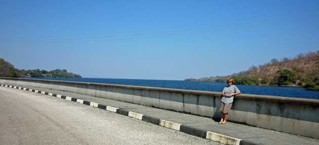 We visited the dam after getting a puncture repaired in Kariba - the same tyre that had been repaired back in Bulawayo. We were able to leave our passports at the border and walk across the dam to the Zambian side. The day before we visited the dam the 3 gates had been open to allow water out it was apparently a spectacular (and very wet) sight.