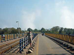 We were able to get a 'Pass' at the border in order to walk across the bridge between Zimbabwe and Zambia - we didn't have to hand in our passports here. It's a joint rail and road bridge.