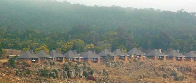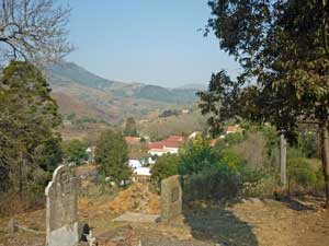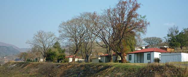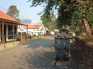 Diana and David's visit to South Africa 2010 - Drakensberg Escarpment, MpumalangaWhen the Drakensberg are mentioned most people think of the mountains in KwaZulu-Natal bordering Lesotho, however the Drakensberg range extends northwards through South Africa and in Mpumalanga has formed an escarpment with the Lowveld to the East and the Highveld in the West. We stopped at Crystal Springs Mountain Lodge (S24 52.064 E30 41.715) which was a 'holiday village' with a shop, pools, games area, spa rooms etc in a small game reserve with driving and hiking trails. On our way to Crystal Springs we visited Pilgrim's Rest, an old mining town (S24 54.478 E30 45.410). Gold was discovered in the area in the 1870s and camps were set up which were later replaced by houses. The town went through periods of prosperity and poverty depending on the price of gold and the various conflicts in the area and the world. The last mine was shut down in 1971. The Transvaal Provincila Administration purchased the town in 1974 and in 1986 it was proclaimed a National Monument. Since then it has been preserved and restored as a living museum. Cottages where miners lived. |