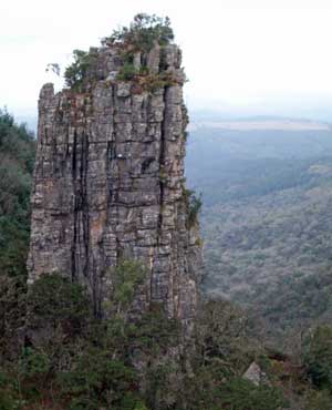 The next day we drove along the 'Panorama Route' which follows the top of the escarpment. Unfortunately it was cloudy so we didn't get to see the great views but it was still worthwhile. It's often misty at the top of the escarpment as the hot air from the lowveld meets the colder air at the top of the escarpment and caused the mist - as we experienced!! |