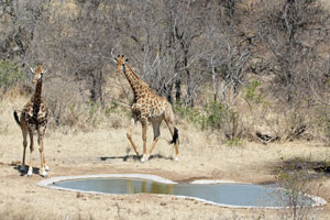 Giraffe visiting the waterhole. |