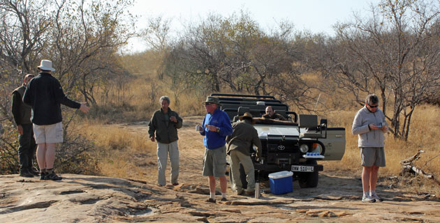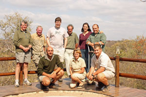 Sean (back row on the right) was on crutches so his wife Sue came to help him out. There were 2 others on the photography course, Frank, from Johannesburg, and Rob who was from Holland and was travelling in Southern Africa for a few months. Dan (front row on the left) was our guide/driver/tracker. Sean is also an excellent tracker and it was interesting to watch how Sean and Dan worked together as we were driving around the Reserve using their knowledge of tracks and animal behaviour. |
