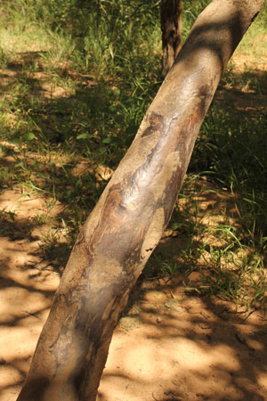It wasn't just animal tracks that we had to identify. We learnt about all sorts of signs left by termites to rhino! This is where a rhino has repeatedly rubbed against a tree. Warthog and wildebeest also run against trees. |
