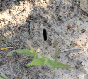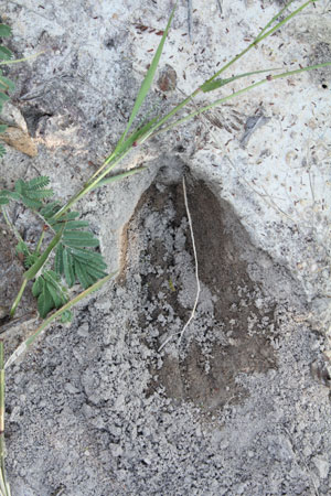This is a scorpions' hole. We also had to been able to identify some bird tracks. These are made by a dove. |