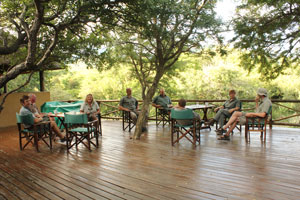 On the last day there was an (optional) assessment. As well as the 6 of us on the course there were 2 other people, Julie and Gerald, being assessed. Everyone except for us had done the assessment previously and were trying to improve their marks - you need 100% to get a Tracker level 4 which then allows you to go onto the Senior Tracker course. Coffee and rusks on the deck early on the final morning, before the assessment. |