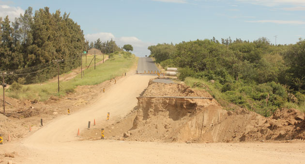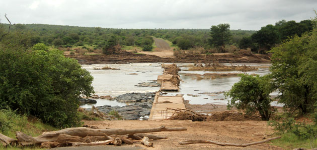 Lowveld, Northern South Africa. January 2012 - Satara, Kruger National ParkFrom Moholoholo we drove to Hoedspruit and discovered that the floods had washed away most of the bridge over this river. We saw another car ignore the no entry signs and go around the bollards so we followed! |