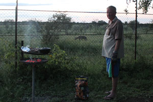 On our second day at Satara we moved to a site next to the fence and each evening saw several hyena patrolling the fence. There are notices telling people not to throw bones over the fence but I suppose that some people must do that or they wouldn't bother walking up and down all evening.