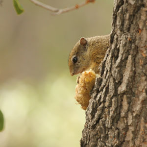 There were always birds and animals around the campsite - tree squirrels, hornbills, francolins, go-away birds and starlings. This tree squirrel enjoyed a corn husk after the francolins had pecked away at it. Relaxing in the shade. |