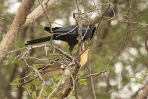 This is a cape starling feeding its baby - a great spotted cuckoo! |