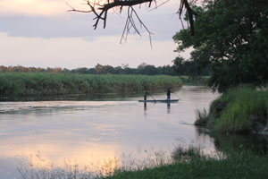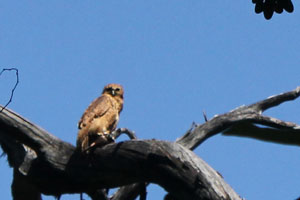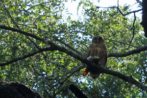 The Lodge and campsite at Shakawe Fishing Lodge has a lovely location besides the Okavango River. The Lodge is known as a good place to see Pel's Fishing Owl and Kitso, the receptionist, offered to take me into the forest to try and locate one. We spent the best part of 2 hours looking and were on our way back to the Lodge when Kitso spotted one high up in a tree. |