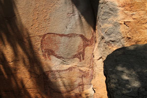 This is the most famous panel on the Rhino Trail. It was first written about by Laurens Van der Post in his book 'The Lost World of the Kalahari'. |