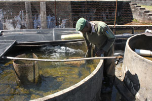 Mare Dam looked lovely in the morning sunshine. We saw a sign for a trout farm and were delighted to find that it was open. One of the guys showed us around and then caught a couple of trout for us ($10 for the two) and cleaned and gutted them for us. |