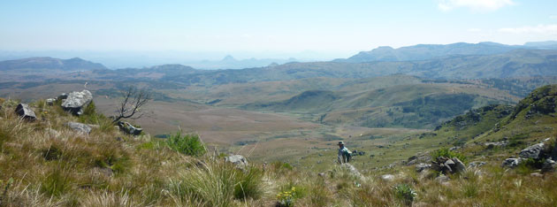 We walked to the top of Leopard's Rock and had a great view over the surrounding countryside. 3. Chimanimani National Park Chimanimani is in the south of the Eastern Highlands and the most remote to get to. As at the other campsites we were the only people there. Approaching the Chimanimani mountains. |