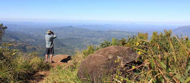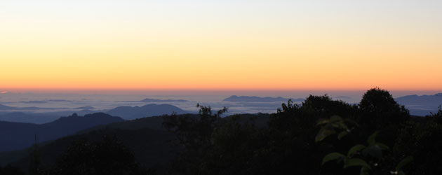 The campsite is on the edge of the plateau and each morning we had a wonderful sunrise over the Mozambique lowlands below us. There was usually cloud or mist over the lowlands with some hills sticking up. |