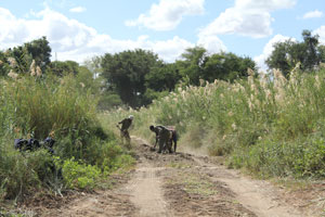 Zimbabwe, April & May 2012 - Gonarezhou National Park.This park is in the SE of Zimbabwe and borders the Kruger National Park in South Africa although there's no border crossing between the parks. We had a couple of nights at Chilojo Cliffs campsite and 2 more nights at Chipinda Pools. This is the classic Gonarezhou photo of the Chilojo Cliffs at sunset. Considering that we visited the Park in May we were surprised how dry it was. There wasn't much water in the river and there was no green grass at all even near the river. |