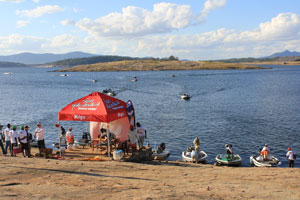We were told that there was a bass fishing competition taking part over that weekend and that the boats would be starting to come in with their day's catch at 4pm so we drove to the yacht club to see the 'weigh in'. The Lake is only 30% full after 3 years of poor rainfall. |