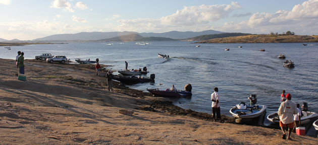 Around 10 to 4 boats suddenly appeared from all parts of the dam. They were all big speedboats with huge motors and lots of them had fancy equipments like sonars for locating the fish. |