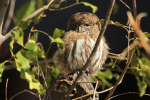 This tiny pearl-spotted owlet was in a bush at the Lodge. |