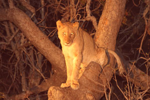 We saw a pride of 3 lionesses and 4 8 month old cubs on 4 occasions over the 3 days. This is one of the young male cubs. |