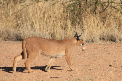 We were surprised to see how short the caracal's tail is. This is a male and was noticeably larger than the female. |