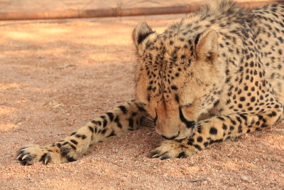 The 2 cheetah had recently been fed and were still close to the gate so we didn't have to walk far to see them. They were very tame we were able to get very close to them. |