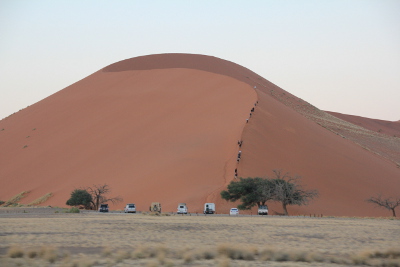 Driving to Sossusvlei we passed Dune 45 and saw several people walking up the dune to watch the sun rise. |